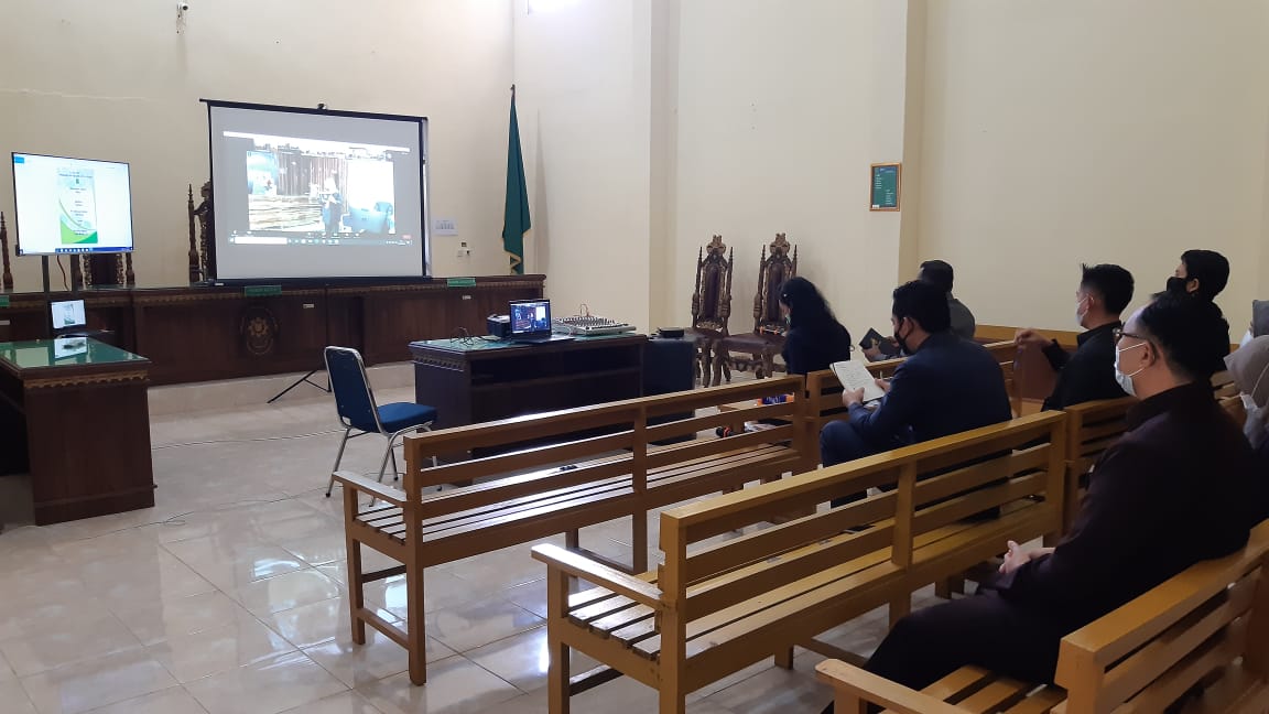 PN-Kota Agung, Senin 08 Februari 2021 Pengadilan Negeri Kota Agung mengikuti Pemaparan dan evaluasi LKE Pembangunan Zona Integritas Sewilayah PT Tanjungkarang secara daring bertempat di Ruang Sidang Utama, dan dihadiri oleh