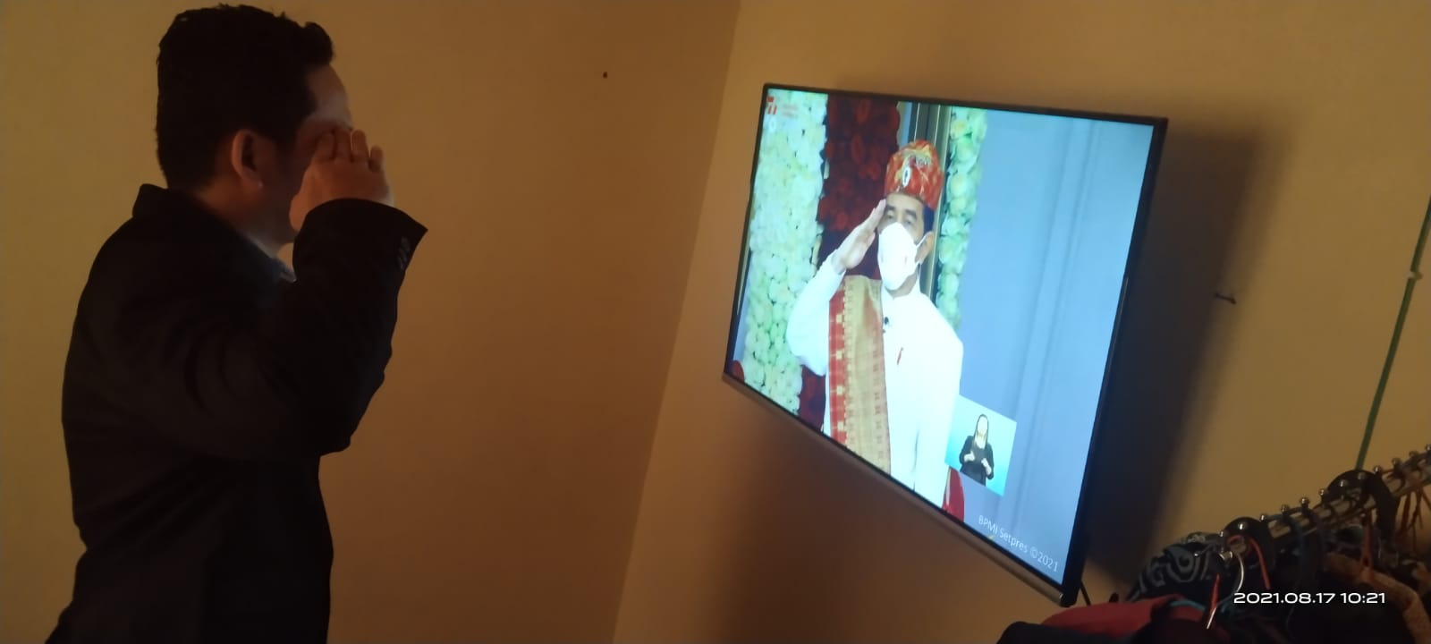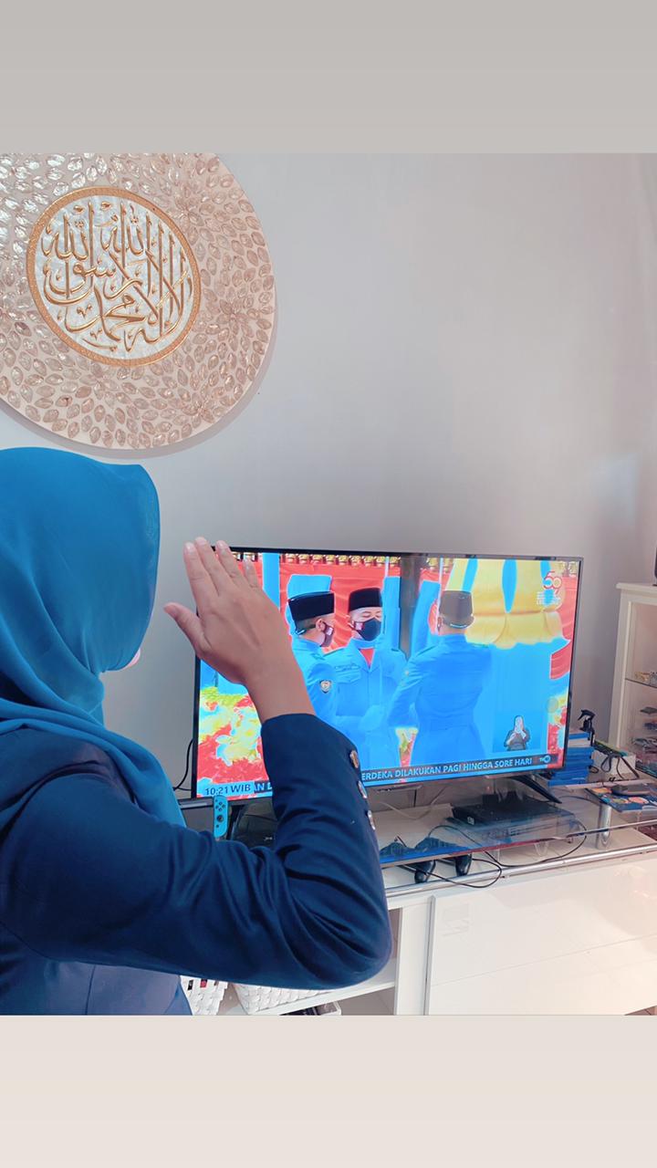 Kota Agung, 17 Agustus 2021| Ditengah pandemi Covid-19 yang melanda Bangsa tercinta kita, Indahnya Persatuan Bangsa Indonesia dalam meraih Kemerdekaan harus tetap disemarakkan. Walaupun secara virtual, Seluruh Pegawai Pengadilan Negeri Kota Agung Kelas II ikut melaksanakan Upacara Peringatan Detik-detik Proklamasi Kemerdekaan Republik Indonesia ke-76 pada 17 Agustus 2021, di kediaman masing-masing melalui saluran televisi atau Rumah Digital Indonesia (www.rumadigitalindonesia.id) pada pukul 10.00 WIB.