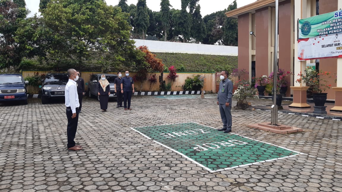 Kota Agung, 13 September 2021|Pada hari Senin 13 September 2021 Pengadilan Negeri Kota Agung melaksanakan kegiatan rutin Apel Pagi, dilakukan setiap Pagi yang bertempat di Halaman Kantor Pengadilan Negeri Kota Agung dengan menjalankan protokol kesehatan demi mencegah penyebaran virus Covid-19. Pada kesempatan kali ini, Apel dipimpin Langsung oleh Ketua Pengadilan Negeri Kota Agung, Bpk. Ari Qurniawan, SH., M.H dan Pemimpin Apel Bpk.Sapri,A.Md. Dalam apel pagi tersebut Ketua Pengadilan Negeri Kota Agung dan juga selaku pembina apel pagi mengingatkan agar tetap semangat dalam menjalankan pekerjaan.