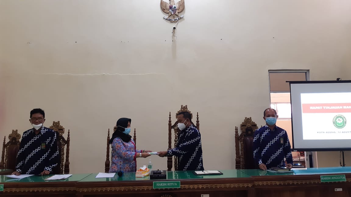 Kota Agung, 07 Februari 2022| Pada hari Senin pukul 09.00 WIB bertempat di Ruang Sidang Utama Pengadilan Negeri Kota Agung Kelas II mengadakan Rapat Tinjauan Manajemen yang dibuka oleh Ketua PN Kota Agung Bapak Ari Qurniawan, S.H., M.H. Rapat Tinjauan Manajemen.dan dihadiri oleh Panitera, para Hakim, para Pejabat Kepaniteraan, para Pejabat Kesekretariatan, para Panitera Pengganti dan Jurusita serta karyawan/ ASN Pengadilan Negeri Kota Agung. Rapat Tinjauan manajemen merupakan suatu proses evaluasi terhadap kesesuaian dan efektifitas pelaksanaan sitem manajemen mutu, dengan cara melakukan pembahasan secara berkala dengan melibatkan berbagai pihak yang terkait.