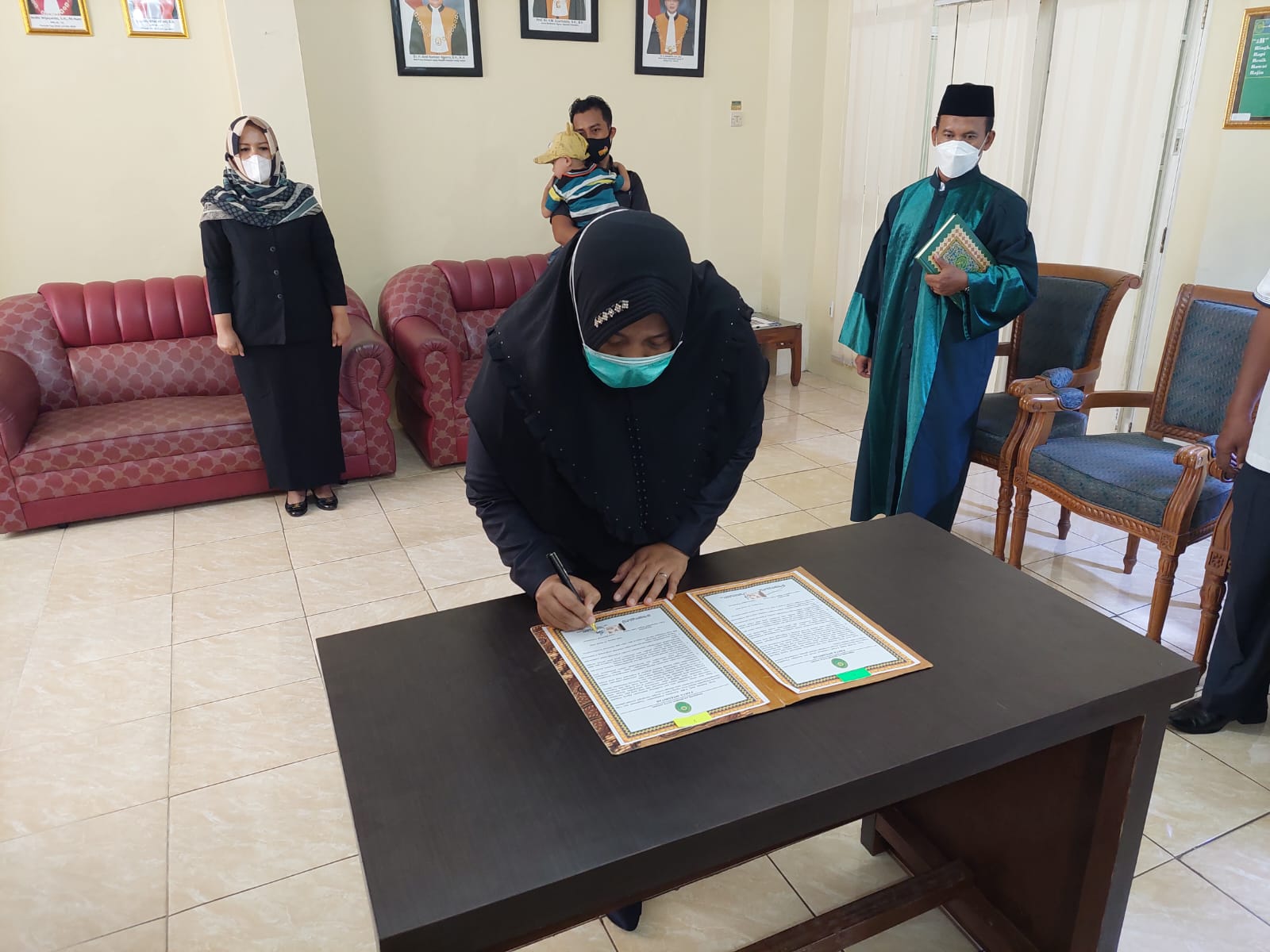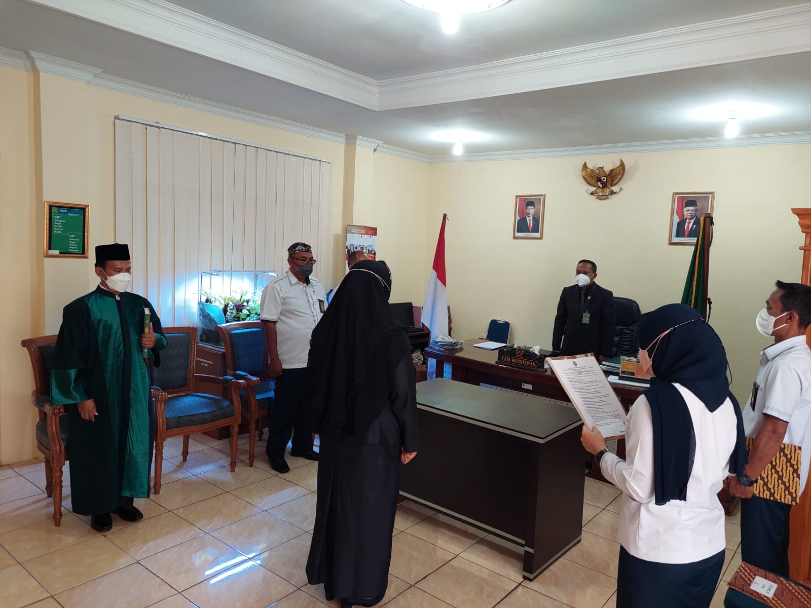 Kota Agung, 14 Maret 2022 | Bertempat di Ruang Sidang Utama Pengadilan Negeri Kota Agung Pada Hari Senin 14 Maret 2022 , Ketua Pengadilan Negeri Kota Agung Bapak Ari Qurniawan, S.H., M.H. melantik dan mengambil sumpah jabatan, Ibu. Komala Sari, A.Md sebagai Kasubbag Kepegawaian dan Ortala Pengadilan Negeri Kota Agung Kelas II, Acara diawali dengan pembacaan surat keputusan Sekretaris Mahkamah Agung RI, Kemudian dilakukan pengambilan sumpah jabatan Kasubbag Kepegawaian dan Ortala Pengadilan Negeri Kota Agung Kelas II, oleh Ketua Pengadilan Negeri Kota Agung Selanjutnya penandatanganan berita acara serta pengambilan sumpah jabatan dan pakta integritas. Ketua Pengadilan Negeri Kota Agung Kelas II Bapak Ari Qurniawan, S.H., M.H. memberikan beberapa kata sambutan salah satunya agar dalam menjalankan tugas dan tanggung jawab jabatan yang di berikan dengan baik. lalu dilanjutkan dengan acara foto bersama. Acara berlangsung dengan tetap memperhatikan Protokol Kesehatan.
