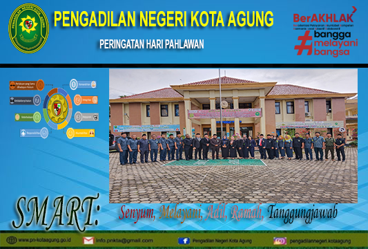 Kota Agung, 10 November 2022 | Pada hari Kamis 10 November 2022 seluruh aparatur Pengadilan Negeri Kota Agung melaksanakan upacara peringatan hari Pahlawan tahun 2022. Upacara peringatan hari pahlawan dipimpin oleh YM. Ketua Pengadilan Negeri Kota Agung Bapak Ari Qurniawan, S.H., M.H. Dimana tema upacara hari pahwalan tahun 2022 ini mengusung tema "Pahlawanku Teladanku"