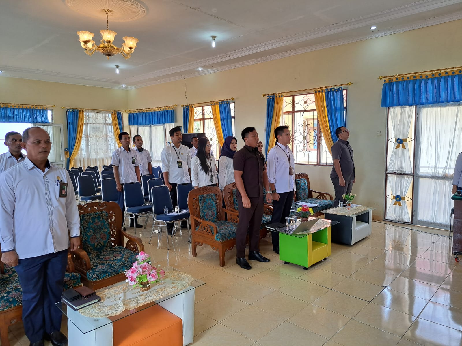 Kota Agung, 14 November 2022 | Dalam rangka pembinaan dan pengawasan di Pengadilan Negeri Kota Agung pada hari Senin, 14 November 2022 telah dilaksanakan rapat rutin bulanan antara Pimpinan Pengadilan Negeri Kota Agung dengan seluruh Hakim, Panitera, Sekretaris, Panmud, Kasubbag, Panitera Penganti, Juru Sita, dan seluruh staf pada Pengadilan Negeri Kota Agung yang bertempat di ruang Aula Pengadilan Negeri Kota Agung. Rapat bulanan bulan Oktober dipimpin langsung oleh Ketua Pengadilan Negeri Kota Agung YM Ari Qurniawan, S.H., M.H. sekaligus menjadi pemberi materi di rapat bulanan. Acara diawali dengan menyanyikan lagu Indonesia Raya berikut Hymne Mahkamah Agung, dan Doa yang dibacakan oleh Bapak Agung Dwi Winarno. Selanjutnya, Hakim pengawas bidang membacakan laporan di bulan Oktober mulai dari Kepaniteraan Perdata, Hukum, Pidana, Subbag Umum Keuangan, Ortala, dan PTIP. dan pemberian Reward PTSP bulan ini diberikan kepada Bpk.Sapri, A.Md