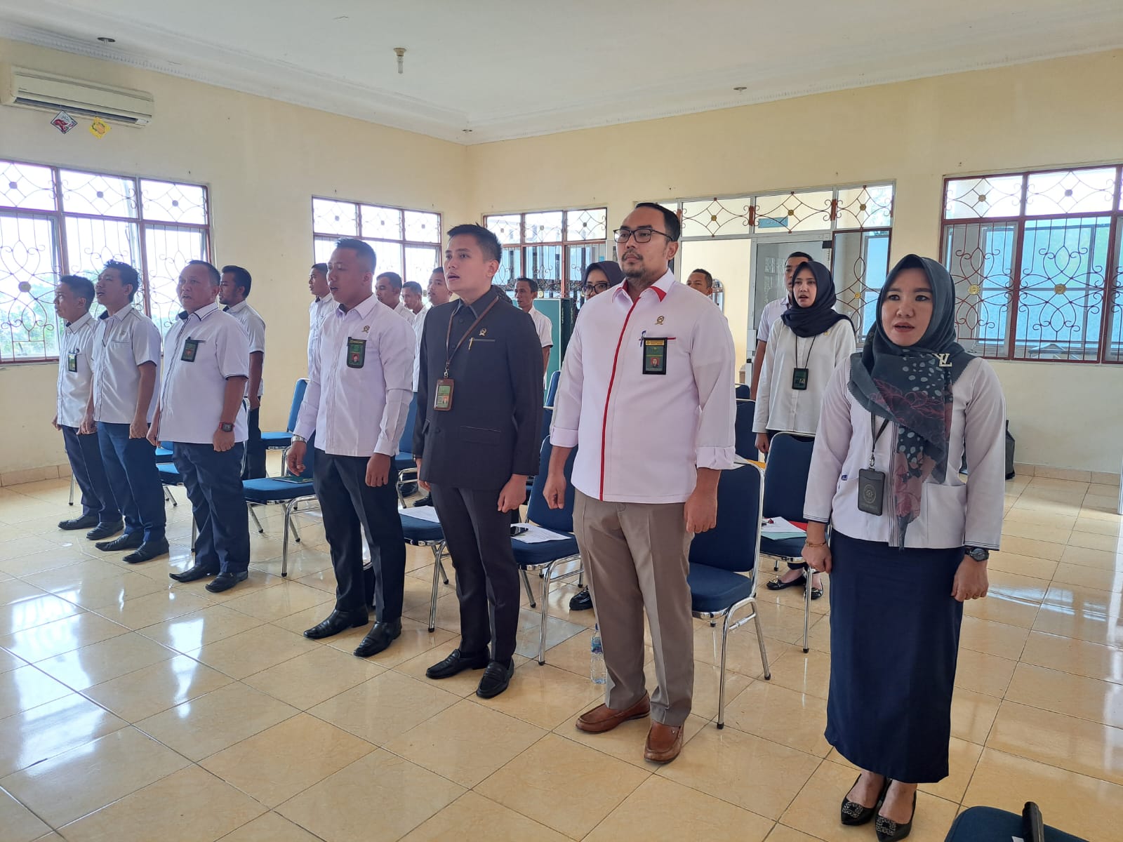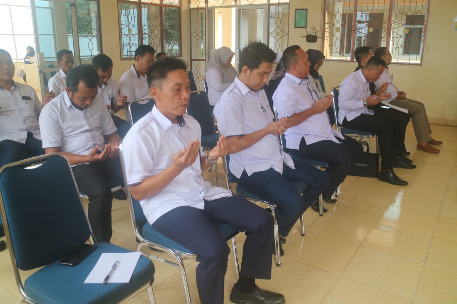 Kota Agung, 18 September 2023 | Pengadilan Negeri Kota Agung melaksanakan Rapat Bulanan, Rapat Pembinaan, dan pengawasan KPN Bulan Agustus 2023 pada hari Senin, 18 September 2023 telah dilaksanakan rapat rutin bulanan antara Pimpinan Pengadilan Negeri Kota Agung dengan seluruh Hakim, Panitera, Sekretaris, Panmud, Kasubbag, Panitera Penganti, Juru Sita, dan seluruh staf pada Pengadilan Negeri Kota Agung yang bertempat di ruang Aula Pengadilan Negeri Kota Agung. Rapat bulanan bulan Agustus dipimpin langsung oleh Ketua Pengadilan Negeri Kota Agung YM Ibu Eva Susiana, S.H., M.H. sekaligus menjadi pemberi materi di rapat bulanan. Acara diawali dengan menyanyikan lagu Indonesia Raya berikut Hymne Mahkamah Agung, dan Doa yang dibacakan oleh Bapak M.Dimas Prasetyo. Selanjutnya, Hakim pengawas bidang membacakan laporan di bulan Agustus mulai dari Kepaniteraan Perdata, Hukum, Pidana, Subbag Umum Keuangan, Ortala, dan PTIP. Dalam pembinaan nya Ketua Pengadilan Negeri Kota Agung Ibu Eva Susiana menyampaikan, agar rapat bulanan di tahun 2023 menjadi sarana evaluasi bagi seluruh bidang sehingga di tahun yang baru dapat semakin meningkatkan kinerjanya. Tak lupa juga seluruh pegawai dipersilahkan berdiskusi, bertanya, atau pun memberikan solusi apabila menemukan kesulitan dalam pekerjaan, dan juga beberapa pegawai mengajukan pendapat serta inovasi untuk kemajuan Pengadilan Negeri Kota Agung.