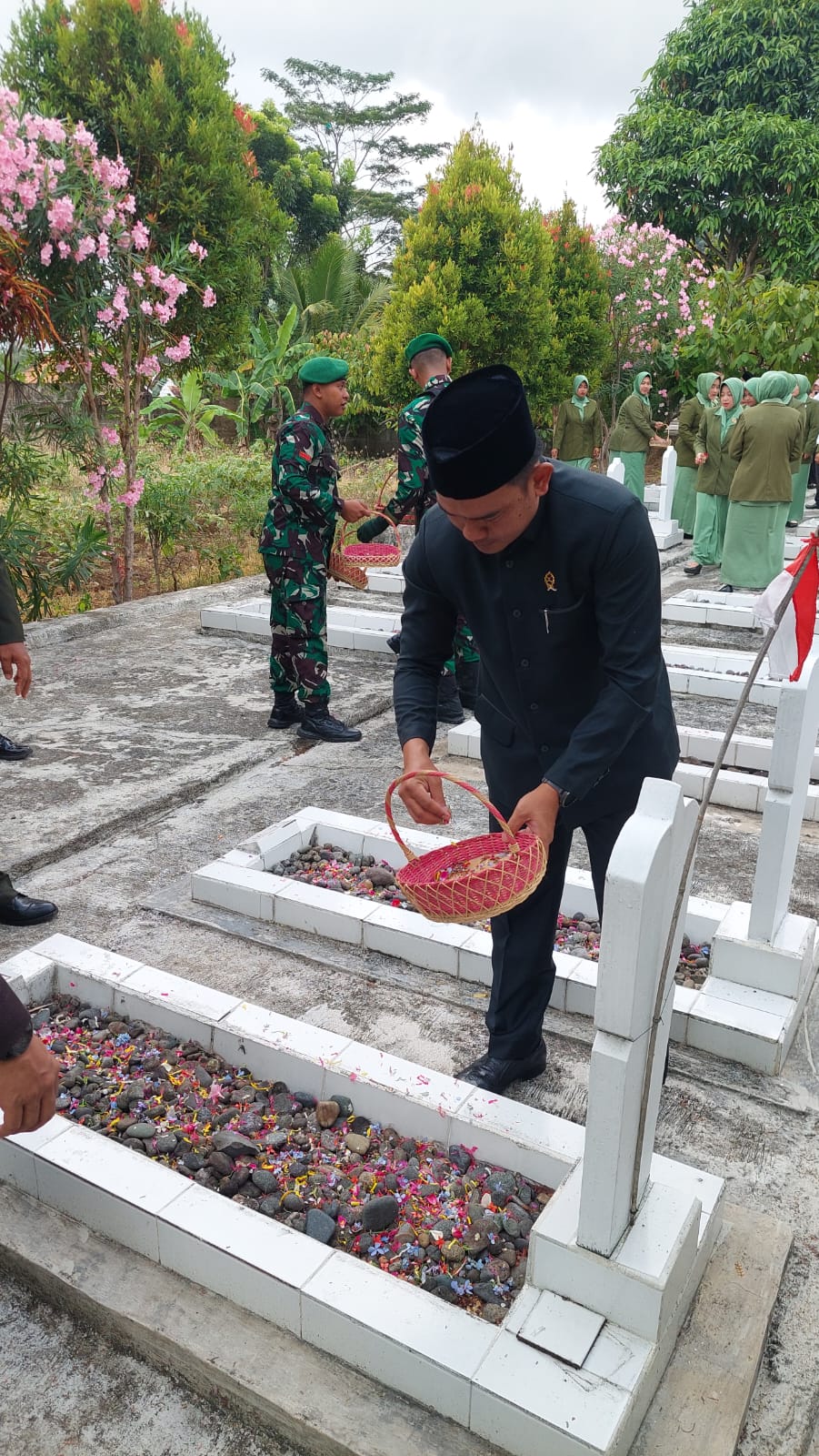 Kota Agung, 04 Oktober 2023 | Pada hari Rabu bertempat di Taman Makam Pahlawan Tanggamus, Bapak Nugraha Medica Prakasa, S.H., M,H. menghadiri upacara ziarah nasional dalam rangka hut TNI ke 78 Tahun 2023. Acara dihadiri oleh jajaran Forkopimda Kabupaten Tanggamus. Upacara ziarah nasional dimulai dengan Upacara penghormatan pada arwah para pahlawan, mengheningkan cipta, peletakan karangan bunga oleh inspektur upacara, doa bersama dan diakhir upacara dengan acara tabur bunga oleh seluruh peserta ziarah. Upacara Nasional di kabupaten Tanggamus dipimpin oleh Letkol Inf Vicky Heru Harsanto, S.I.P.,M.Si selaku Komandan Kodim 0424/Tanggamus.