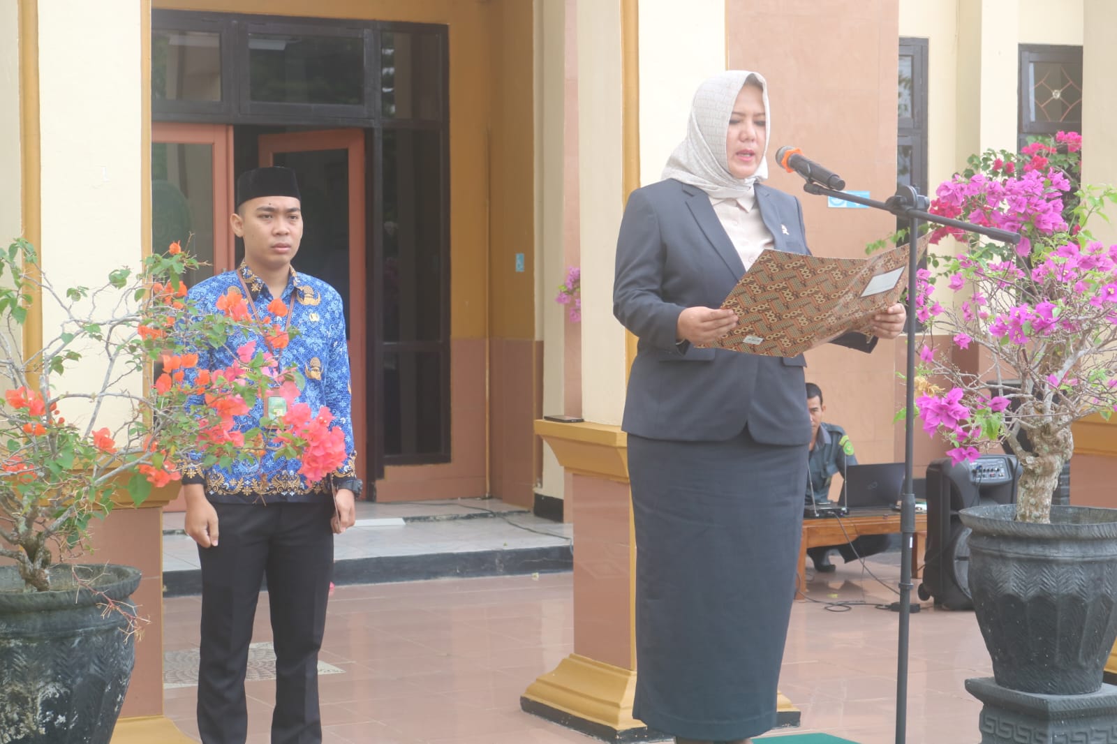 Upacara dipimpin oleh Bapak Yayan Sulendro, S.H., M.H. dengan petugas pengibar bendera Bagus Cakra Jati Kesuma, Melva Christien Manurung, S.H. dan Aris Ferdiansyah mengheningkan cipta yang dipimpin oleh inspektur Upacara dan dilanjutkan dengan pembacaan teks Pancasila, naskah Pembukaan UUD 1945 yang dibacakan oleh Sapri, A.Md. Pembacaaan Ikrar yang dibacakan oleh Amsal Pastoral Sihombing, A.Md, dan pembacaan Do’a oleh Agung Dwi Winarno