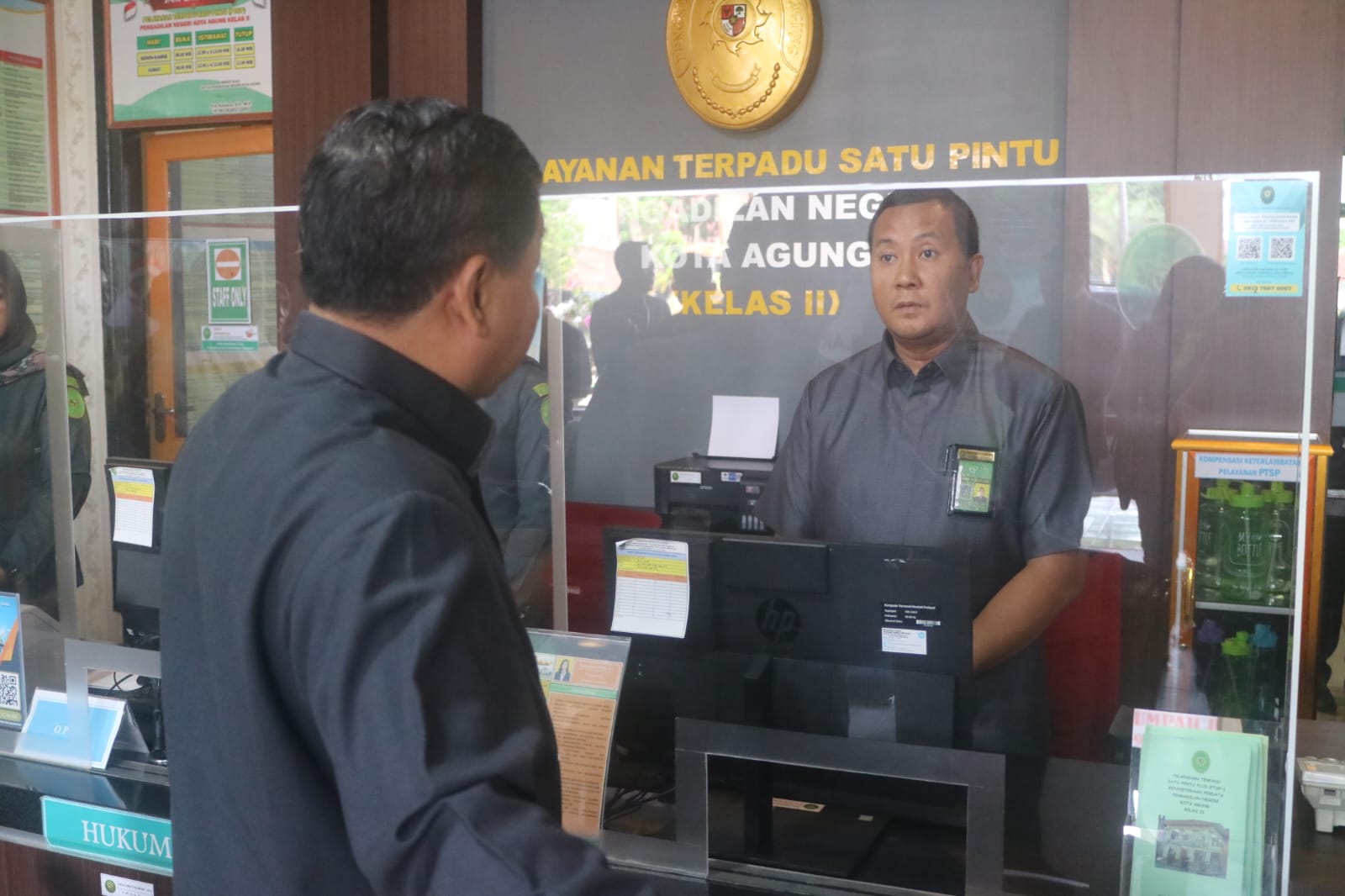 Kota Agung, 07 November 2023 | Pada hari Selasa tanggal 07 November 2023 Pengadilan Tinggi Tanjungkarang dalam rangka Pembinaan hadir di Pengadilan Negeri Kota Agung kelas II. Tim Pembinaan Pengadilan Tinggi Tanjungkarang dipimpin langsung oleh Yang Mulia Bapak Ketua Pengadilan Tinggi Tanjungkarang Bapak Dr. Heru Pramono, S.H. M.Hum beserta tim Pengadilan Tinggi Tanjungkarang. Tim Pengadilan Tinggi Tanjungkarang hadir pada Pengadilan Negeri Kota Agung kelas II pada pukul 08:00 WIB. YM KPT Tanjungkarang dan tim disambut oleh Ketua Pengadilan Negeri Kota Agung Ibu Eva Susiana, S.H., M.H. dan keluarga besar Pengadilan Negeri Kota Agung. YM Bapak KPT Tanjungkarang bertanya mengenai pelayanan publik pada petugas PTSP Pengadilan Negeri Kota Agung dan berharap agar Petugas PTSP Pengadilan Negeri Kota Agung dapat memberi pelayanan maksimal dan juga menyampaikan informasi yang jelas kepada para pengunjung yang datang ke Pengadilan Negeri Kota Agung dan juga YM Bapak KPT juga menyampaikan beberapa materi penting terkait administrasi peradilan kepada seluruh warga Pengadilan Negeri Kota Agung bertempat di Ruang sidang utama Pengadilan Negeri Kota Agung. Acara diakhiri dengan foto bersama dan rombongan tim PT Tanjungkarang kembali melanjutkan agenda pembinaan pada pengadilan negeri sewiilkum PT Tanjungkarang.