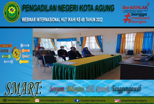 Kota Agung, 17 Maret 2022 | Pada hari Kamis, 17 Maret 2022 bertempat di Aula Pengadilan Negeri Kota Agung. Ketua Pengadilan Negeri Kota Agung Bapak Ari Qurniawan, S.H., M.H., Wakil Ketua Pengadilan Negeri Kota Agung Ibu Eva Susiana, S.H., M.H beserta para Hakim Pengadilan Negeri Kota Agung mengikuti Undangan Webinar Internasional HUT ke-69 IKAHI Tahun 2022 dengan tema "Peranan Sumber Daya Manusia dan Teknologi Informasi Untuk Mewujudkan Peradilan Modern Dalam Perspektif Lintas Negara" bekerja sama dengan US Department of Justice, Office of Overseas Prosecutorial Development, Asistence, and Training (Departemen Kehakiman Amerika Serikat, Kantor Pengembangan, Bantuan dan Pelatihan Kejaksaan Luar Negeri) USDOJ,OPDAT.