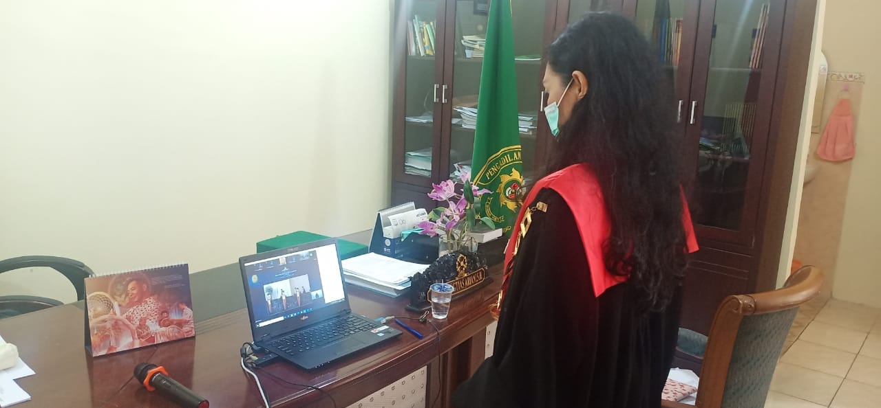 PN-Kota Agung- Kota Agung, 17 Februari 2021. Ketua Pengadilan Negeri Kota Agung Ibu. Ratriningtias Ariani, S.H. menghadiri LAPORAN TAHUNAN MAHKAMAH AGUNG 2020 secara virtual dari ruangan kerja Ketua Pengadilan Negeri Kota Agung dengan