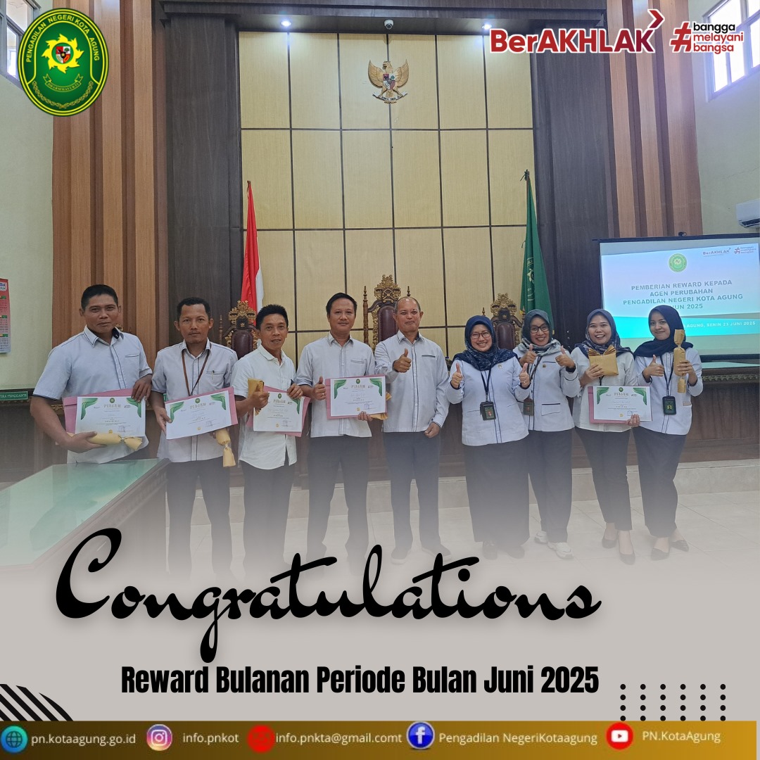 Pemberian Reward Bulanan Periode Bulan Juni 2025 kepada: