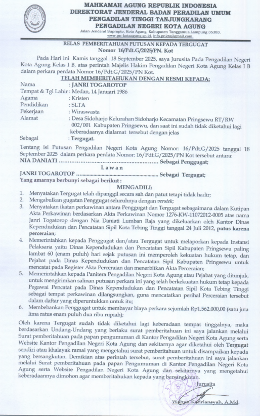 Kategori Panitera Pengganti Bapak Ahyan Azis, S.H.