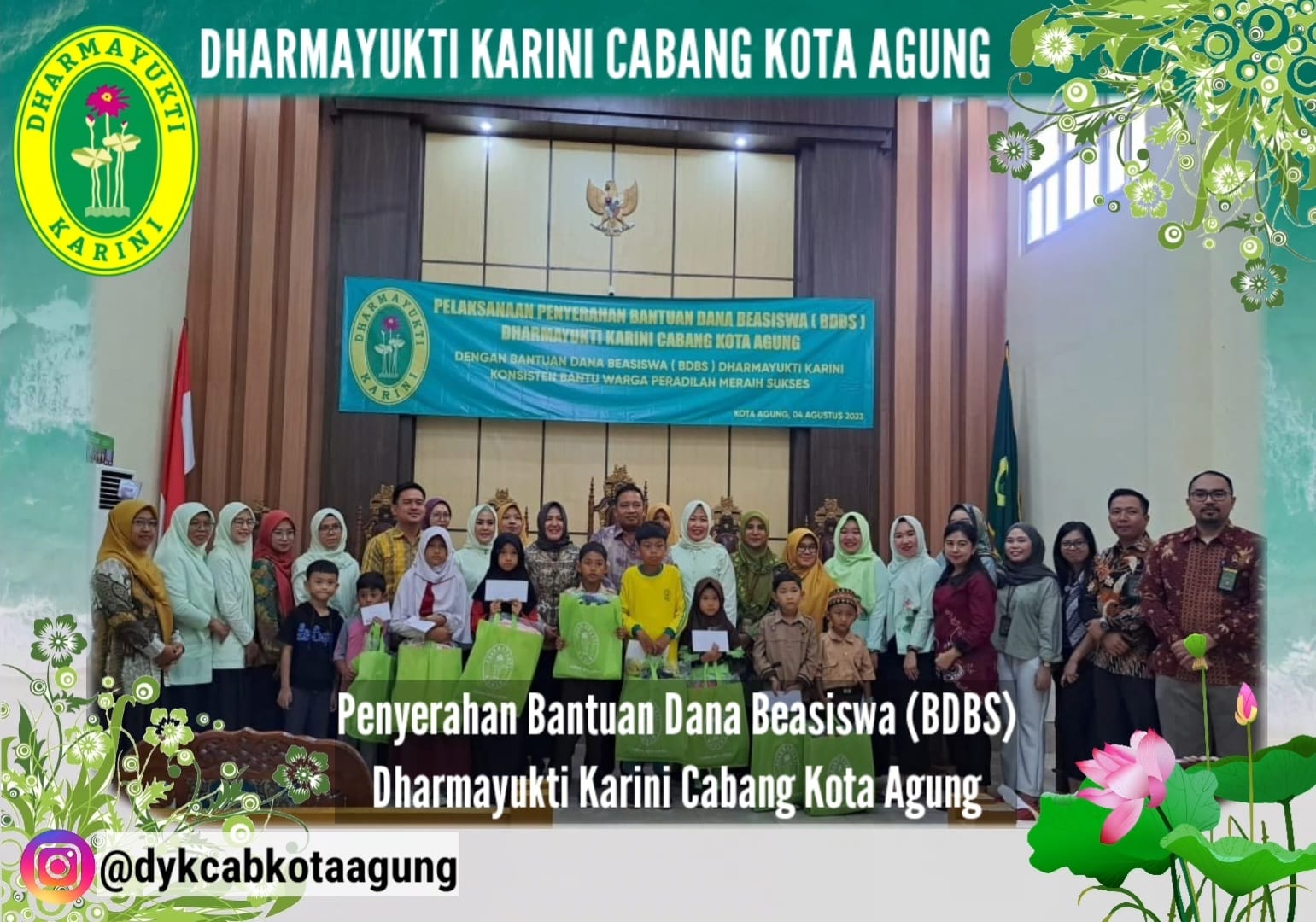 Kota Agung, 04 Agustus 2023 | Pada hari Jum’at, 4 Agustus 2023 pukul 09.00 WIB bertempat di ruang sidang Cakra Pengadilan Negeri Kota Agung, telah dilaksanakan Penyerahan Bantuan Dana Beasiswa (BDBS) tahun ajaran 2023 – 2024 kepada putra-putri Keluarga Besar Pengadilan Tanggamus oleh Dharma Yukti Karini Cabang Tanggamus. Acara tersebut dihadiri Ibu Eva Susiana, S.H., M.H. selaku Ketua Pengadilan Negeri Kota Agung, Bapak Nugraha Medica Prakasa, S.H., M.H. selaku Wakil Ketua Pengadilan Negeri Kota Agung, Ibu Ketua Dharmayuti Karini Cabang Tanggamus, para Pengurus serta Anggota Dharmayukti Karini Cabang Tanggamus. Dalam sambutannya Bapak Ketua Pengadilan Negeri Kota Agung Eva Susiana, S.H., M.H. berpesan agar Putra-putri yang mendapat Bantuan Dana Beasiswa (BDBS) tersebut dapat meningkatkan prestasinya disekolah serta menjadi anak-anak yang berguna bagi Bangsa dan negara kelak, Harapannya Bantuan Dana Beasiswa (BDBS) dapat meningkatkan semangat putera-puteri di lingkungan Mahkamah Agung Republik Indonesia khususnya Dharmayukti Karini Cabang Kota Agung agar menjadi pribadi yang mandiri dan bertanggung jawab.