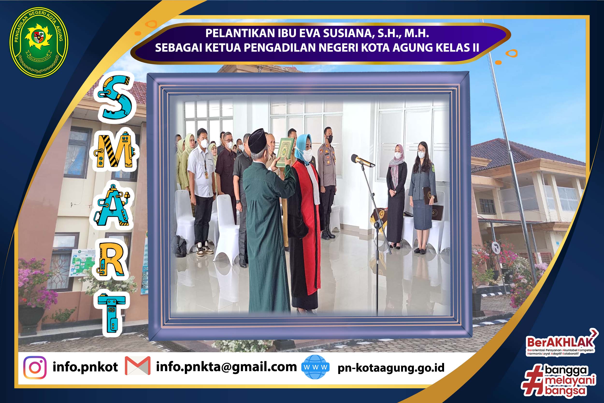 PENGAMBILAN SUMPAH JABATAN DAN PELANTIKAN IBU EVA SUSIANA, S.H., M.H. SEBAGAI KETUA PENGADILAN NEGERI KOTA AGUNG KELAS II