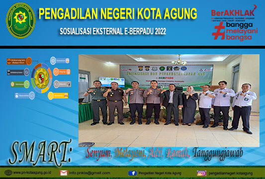 Kota Agung, 16 November 2022 | Pada hari Rabu Tanggal 16 November 2022 diadakan sosialisasi eksternal E-Berpadu kepada seluruh APH di wilayah hukum Pengadilan Negeri Kota Agung Kelas II. Aplikasi Elektronik Berkas Pidana Terpadu (E-Berpadu) adalah sistem pengelolaan berkas pidana terpadu secara elektronik dan terintegrasi khusus antara lembaga peradilan di bawah Mahkamah Agung dan instansi penegak hukum lainnya untuk pertukaran berkas pidana guna mengurangi penanganan berkas fisik secara manual (paperless) sehingga cepat dan efisien. Dalam sambutannya YM Ketua Pengadilan Negeri Ari Qurniawan, S.H., M.H menerangkan bahwa Dengan diluncurkan aplikasi E-Berpadu ini maka pertukaran data maupun informasi seperti perpanjangan penahanan dari pihak kepolisian, izin besuk oleh yang dilaksanakan oleh lapas, pelimpahan berkas perkara dari jpu, serta pertukaran informasi antar instansi dari dan ke Pengadilan Negeri Kelas II Kota Agung Kabupaten Tanggamus dapat dilaksanakan melalui aplikasi E-Berpadu. Usai sambutannya undangan yang hadir menandatangani nota kesepahaman (MoU) dengan Pengadilan Negeri Kota agung sebagai bentuk komitmen dukungan dalam penggunaan dan pengembangan Aplikasi E-Berpadu. Seusai mendatangani nota kesepahaman maka dilanjutkan dengan sosialisasi teknis mengenai aplikasi E-Berpadu yang dipandu oleh YM. Bpk. Zakky Ikhsan Samad, S.H., M.H. dan YM. Bpk. Trisno Jhohannes Simanullang, S.H. Hakim Pengadilan Negeri Kota Agung dan Operator IT bidang Kepaniteraan Bpk. Sapri, A.Md.