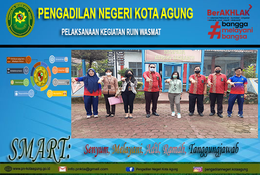 Kota Agung, 05 Agustus 2022 | Pada Hari jumat, 05 Agustus 2022 Pukul 09:00 WIB telah dilaksanakan kegiatan rutin wasmat di Lembaga Pemasyarakatan Kelas II B Kota Agung. Pelaksanaan Kegiatan wasmat dilakukan oleh Hakim wasmat YM. Bpk. Trisno Jhohannes Simanullang, S.H. Plt Panmud Pidana Ibu Martha Diana, S.H., M.H. Staf Pidana Ibu Sandy Aletta Sinaga, S.H, Ibu Melva Christien Manurung, S.H Bpk. Muadin, dan Bpk. M. Elvin Ramadhan. Kegiatan rutin wasmat berjalan dengan baik dan lancar. Dan rombongan dari PN Kota Agung meninggalkan Lapas Kelas II B Kota Agung pukul 12:00 WIB.