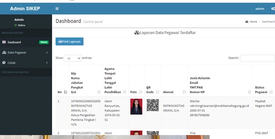 Aplikasi ini memfasilitasi pembuatan QR Code masing-masing pegawai di lingkungan Pengadilan Negeri Kota Agung, Output dari aplikasi ini berupa Label Arsip Map Pegawai yang telah memiliki QRCode serta tanda pengenal pegawai yang sudah terdapat QRCode.