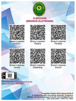 Aplikasi ini memfasiltasi pembuatan brosur elektronik, brosur elektronik digunakan dengan cara menscan qrcode menggunakan handphone android yang akan menampilkan brosur pengadilan dalam bentuk elektronik/file pdf.