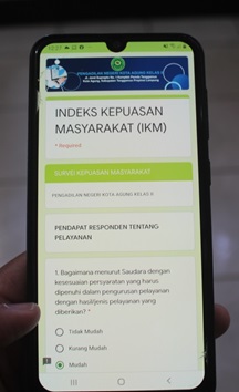Aplikasi ini memfasiltasi survey Indeks Kepuasan Masyarakat (IK) dan Indeks Persepsi Korupsi (IPK) dengan memanfaatkan google formulir, link untuk kuisioner di fasilitasi dalam bentuk brosur yang terdapat link beserta qrcode untuk menuju ke pengisian kuisioner.