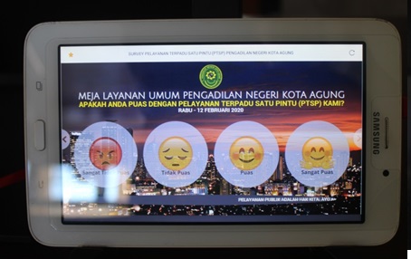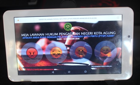 Aplikasi ini memfasiltasi survey Harian Pelayanan di Meja PTSP, terdiri dari pelayanan meja umum, pidana, perdata dan hukum. Aplikasi ini menampilkan pilihan penilaian yang dapat di pilih oleh penerima layanan PTSP di layar ipad yang telah di sediakan di masing-masing meja layanan PTSP.
